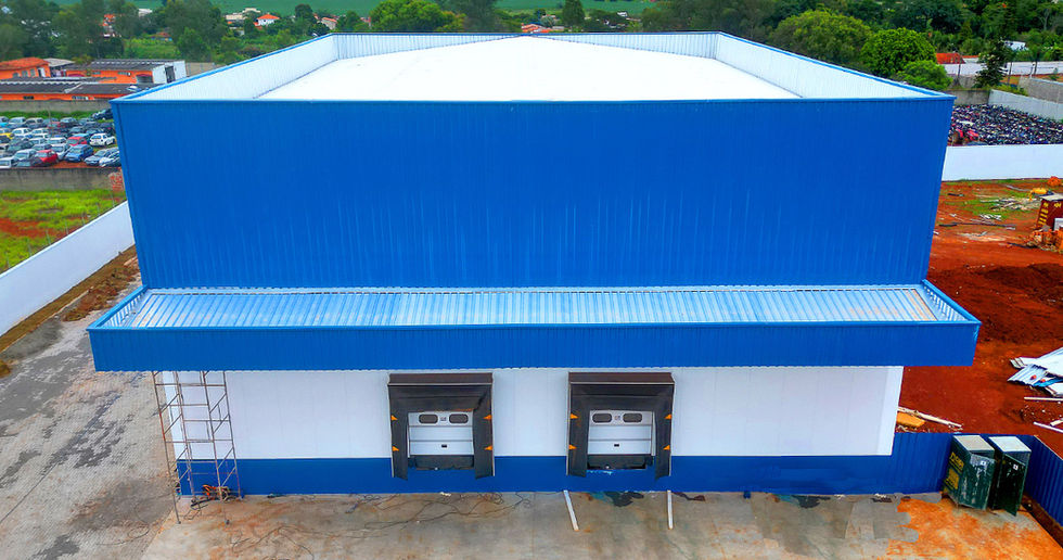 Construção de Galpão Industrial destinado para ampliação da nova Sede da empresa Paulispan - SP, na cidade de Itapetininga, aproximadamente 1.000 m² da primeira obra e 3.000 m² da segunda obra, utilizamos fundações moldadas “In loco” (blocos de coroamento e estacas escavadas), Pilares e vigas pré-fabricados em concreto, lajes alveolares, pilares metálicos, estrutura metálica de cobertura, coberto com telhas Iso-Painel, com pintura na face interna e fechamento metálico lateral com telha metálica comum com pintura azul na face externa.